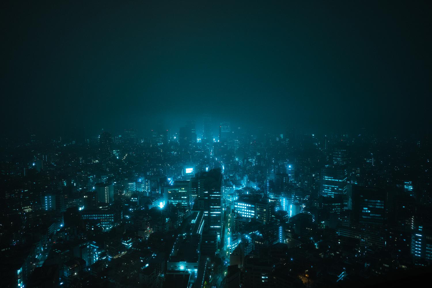 A rainy day in Tokyo seen from a skyscraper in Ebisu.